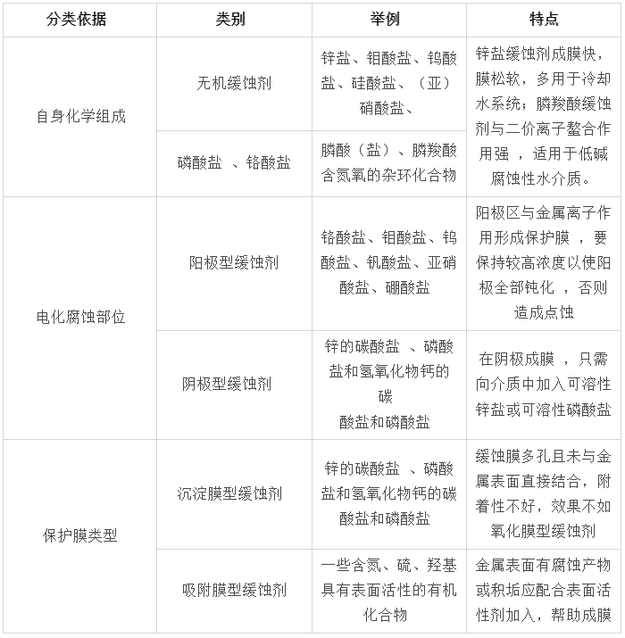 詳細(xì)的緩蝕劑分類、舉例和主要用途如下圖所示→